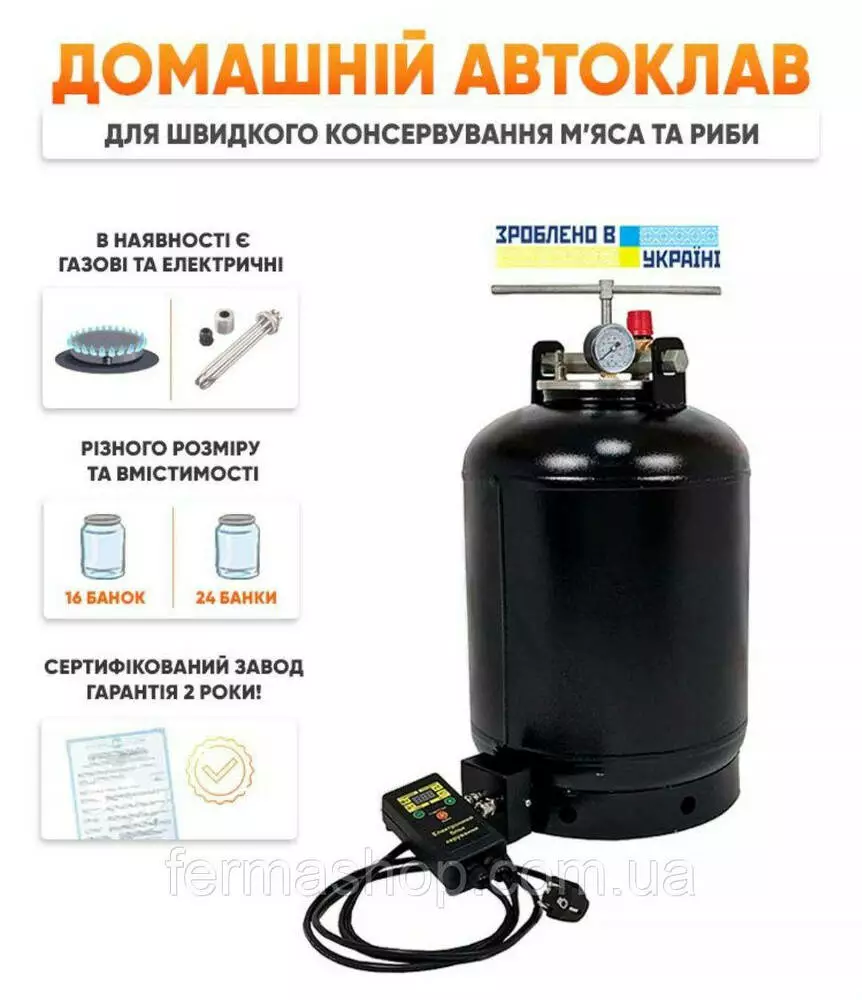 Автоклав предназначен для работы в домашних условиях, как стерилизатор пищевых продуктов для стерилизации и консервирования мяса, птицы, рыбы, овощей, фруктов, соков, компотов, паштетов и других продуктов в натуральном соку без применения консервантов, расфасованных и укупоренных сырыми в стеклянные банки.