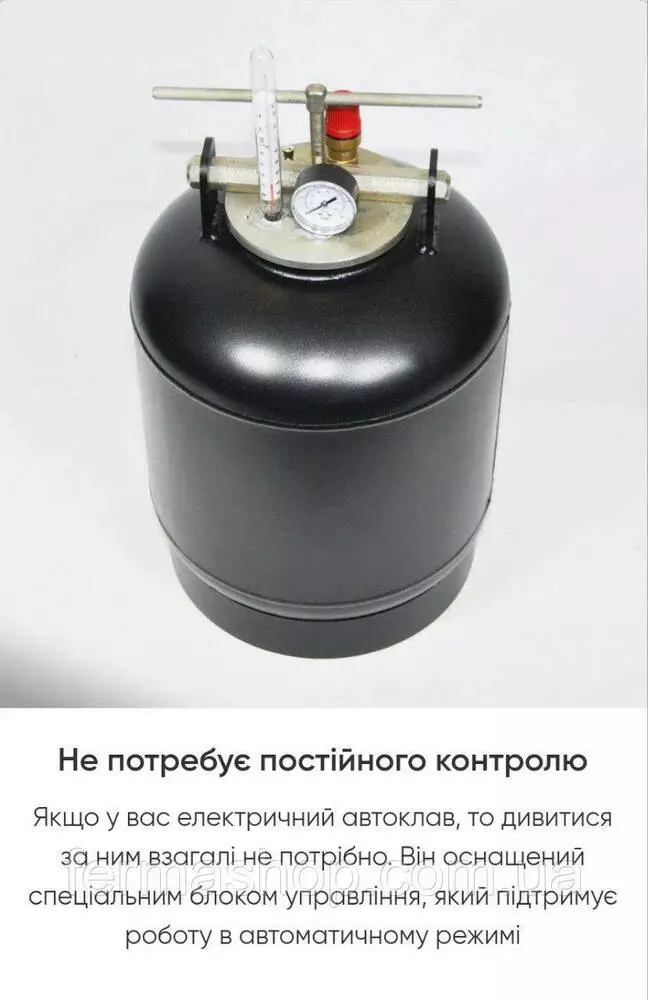 Автоклав предназначен для работы в домашних условиях, как стерилизатор пищевых продуктов для стерилизации и консервирования мяса, птицы, рыбы, овощей, фруктов, соков, компотов, паштетов и других продуктов в натуральном соку без применения консервантов, расфасованных и укупоренных сырыми в стеклянные банки.