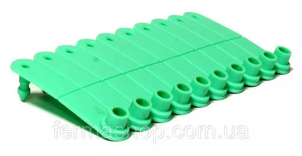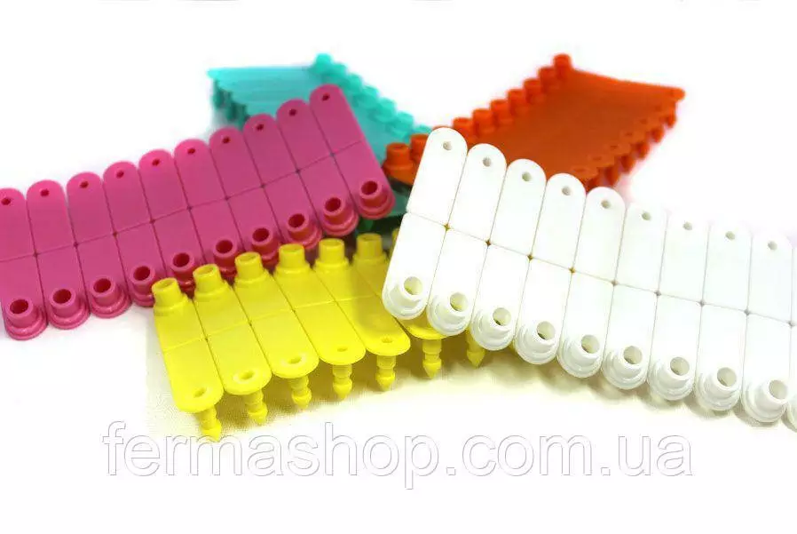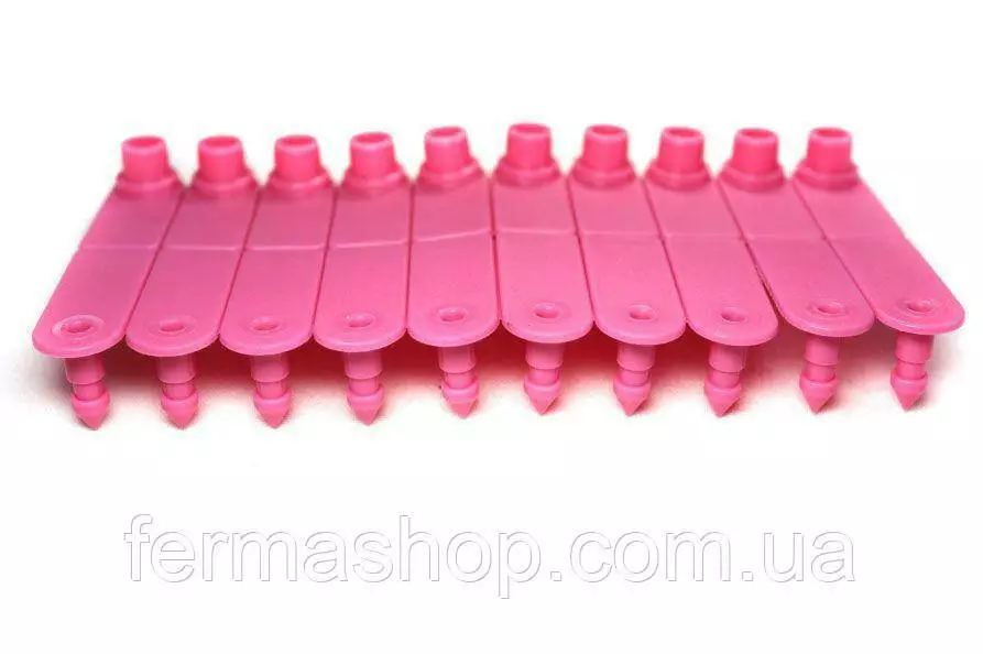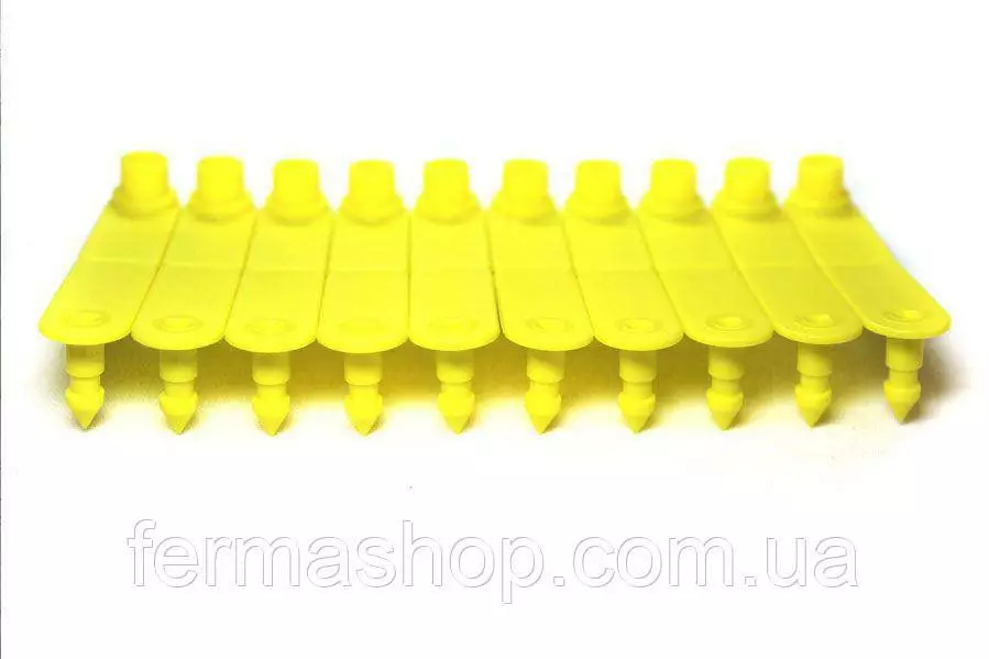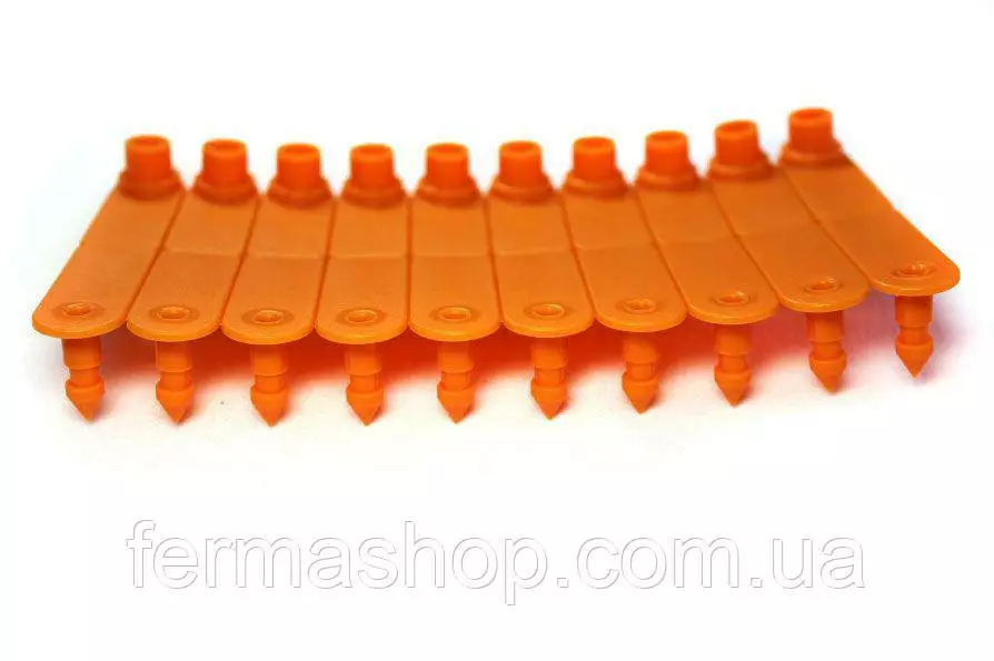 Бирка ушная :входящей и полой части, которые соединяются с помощью аппликатора непосредственно на ухе животного.