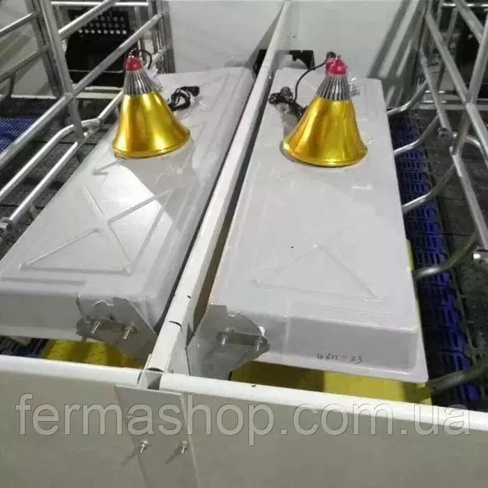 Крышка - тепловой навес для поросят в бокс для опороса. Специально разработанная для создания соответствующего климата новорожденным поросят, которым нужна более высокая температура, чем свиноматке. А также для обеспечения оптимального комфортного климата поросят, а также помогает снизить потребление энергии, поскольку сохраняет тепловую энергию, сгенерированную инфракрасной лампой и/или ковриком обогрева, как водяным, так и электрическим. Крышка изготовлена из прочного высококачественного, жаростойкого стеклопластика для длительного срока эксплуатации. Конструкция удобна в использовании и обеспечивает простоту монтажа. Оборудование может быть установлено с разными аксессуарами, а именно инфракрасная лампа, коврик для обогрева, помогающая оставаться поросятами в зоне комфорта, а также еще дольше сохранять сгенерированное тепло.Преимущества использования домика: Создает оптимальный климат для поросят, защищает животных от сквозняков. Уменьшает уровень истощения поросенка после рождения. Помогает в получении более красивых привесов у поросят. Позволяет значительно снизить потребление электроэнергии в свинарнике. Простота монтажа и долговечность эксплуатации.