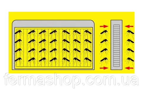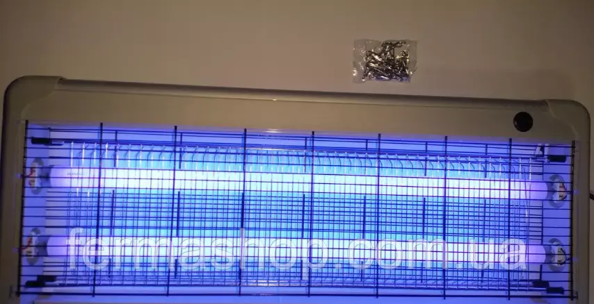 Характеристики: Мощность (Вт): 40 Вт. Количество ламп: 2 Источник питания: 220 - 240В. Принцип действия: Электрический. Применение: На открытом воздухе или внутри помещения. Площадь действия: до 100 кв.м. Тип используемых ламп: Ультрафиолетовая лампа. Ширина: 600 мм Высота: 255 мм Длина: 645 мм Цвет: Серебро. Описание: Электрический убийца насекомых использует ультрафиолетовую лампу для привлечения летающих насекомых (мух, мотыльков и комаров), а затем убивает их электрическим током благодаря металлической сетке, через которую протекает ток высокого напряжения. Каждая модель в линейке электрических убийц насекомых является прочной, современной, очень эффективной, безопасной и оснащенной разрушающей решеткой, которая не забивается и имеет поверхность, устойчивую к образованию ржавчины и трещин, и обесцвечивание. Специально разработанная УФ-трубка использует ультрафиолетовое излучение, безвредное для людей и домашних животных. Внешняя сетка обеспечивает защиту от сети, заряженной электричеством, к которому нельзя прикасаться. Это устройство не использует химикаты или аэрозоли, не создает паров, запахов или грязи и не загрязняет окружающую среду. Ассортимент электрических убийц насекомых идеально подходит для использования внутри помещений, например, в домах, на фабриках, в продовольственных магазинах, на мясных складах, в больницах и т. Д.Оплата та доставка