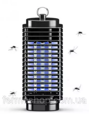 Электрический убийца насекомых использует ультрафиолетовую лампу для привлечения летающих насекомых (мух, мотыльков и комаров), а затем убивает их электрическим током благодаря металлической сетке, через которую протекает ток высокого напряжения.