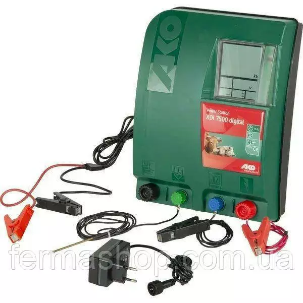 Состоит из: Прибор, Соединительный кабель 12 Вольт с клеммами из нерж. стали, Адаптер переменного тока 230 В, Кабель для изгороди и подключения заземления.
