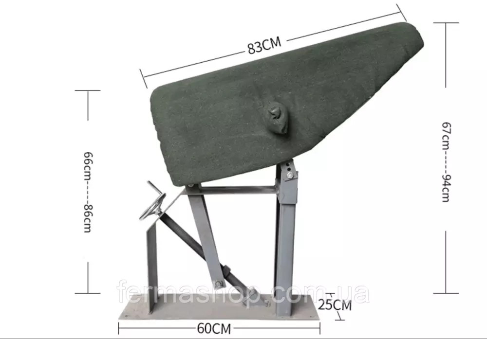 Високоякісний фантом свиноматки – це незамінний інструмент для сучасних свиноводських господарств, що спеціалізується на штучному осі. Наш фантом виготовлений із прочих матеріалів, що забезпечує довговічність і стабільність у використанні. Характеристики: Розміри: Длина 83 см, висота регулюється від 66 см до 94 см, ширина основи 60 см, товщина металу 5 мм. Матеріали: Прочна сталева конструкція, покриття порошковою краской для захисту від корозії. Комфорт: Оббивка фантома виконана з м'якого, але стійкого до розміру матеріалу, що імітує обробіток свиноматки для оптимальної стимуляції хряка. Стабільність: Надійна підставка з антискользящим покриттям гарантує стійкість під час використання. Регулювання: Висота легко регулюється за допомогою зручного механізму, що дозволяє налаштувати фантом під різні породи і розміри хряків. Вес 25 кг Переимущества для Вашей ферми: Повышение эффективности сбора спермы. Забезпечення безпеки для тварин і персоналу. Можливість точного контролю процесу збору сперми. Цей фантом стане в допомогу для забезпечення ефективного і гуманного процесу збору сперми, сприяючи покращенню репродуктивного здоров'я тварин і якості генетичного матеріалу.Оплата та доставка