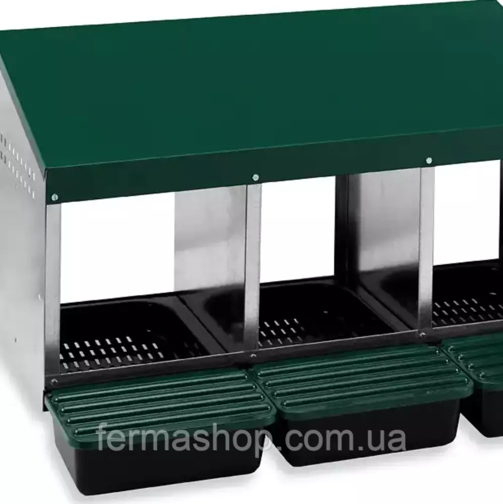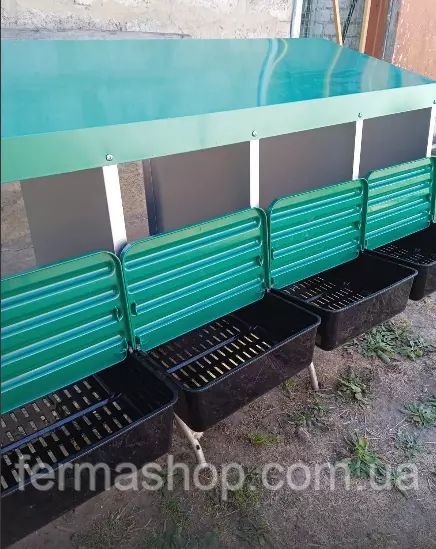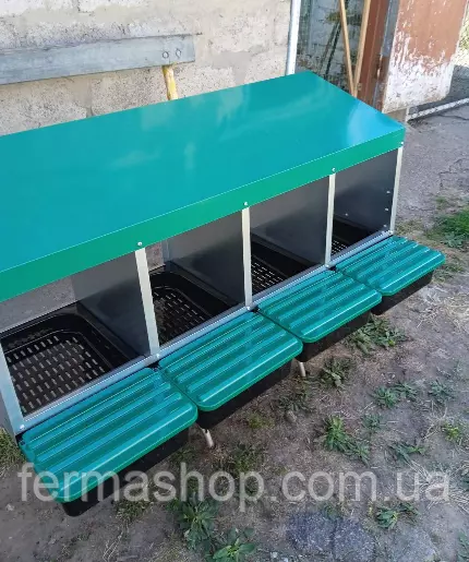 Изготовлено из оцинкованной стали и качественного пластика.Яйца скатываются в отдельный яйцесборник, которые имеют отверстия для вентиляции.