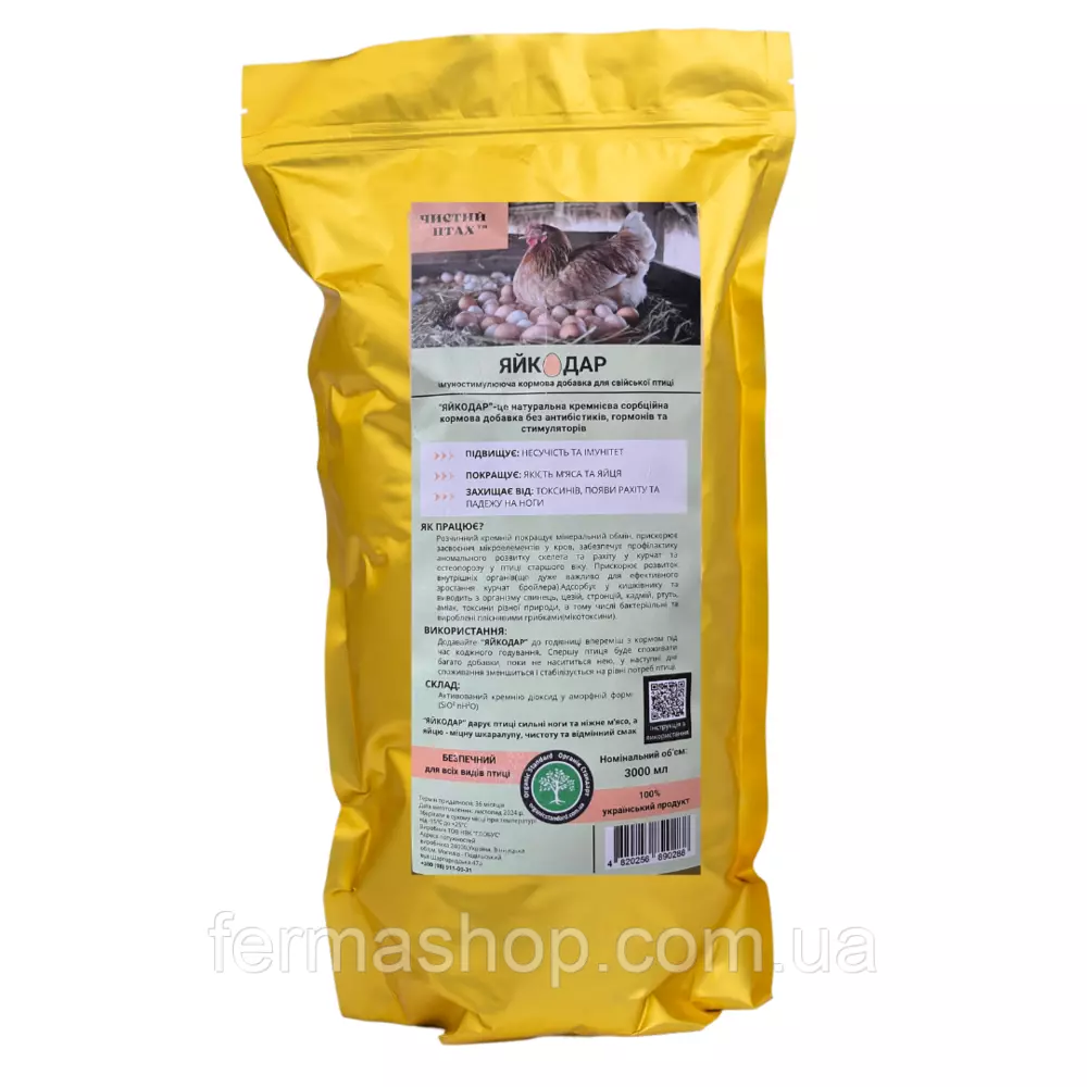 Імуностимулююча кремнієва добавка ЯЙКОДАР, 3 лЯкщо ви хочете підтримати здоров’я своїх курей і підвищити їхню продуктивність, кремнієва добавка — це те, що допоможе вам досягти цих цілей. Кремній є одним із ключових елементів для підтримки кісток і пір'я в гарному стані, а також для покращення якості яєць. Продукт "ЯЙКОДАР" містить до 40% засвоюваного кремнію, що робить його одним із найефективніших на ринку. Розглянемо детальніше, чому кремнієві добавки такі важливі для курей-несучок.