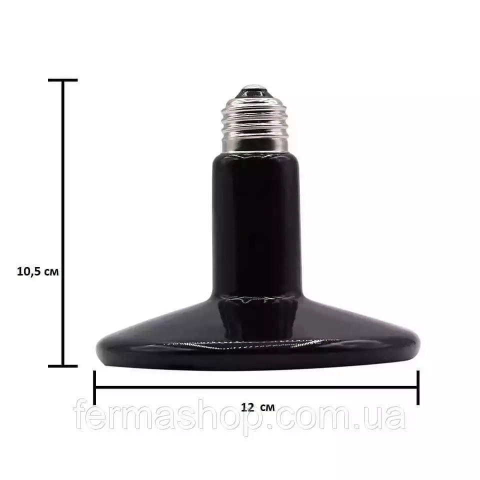 Характеристики керамической лампы: Цоколь: E27 Устойчива к встряскам и ударам Мощность: 150W Размер: 12х12х10,5 см Напряжение: 220/240В Сертификаты: CE Крепкий и монолитный керамический элемент Принцип работы: Керамическую лампу вкручиваем в патрон и идет постепенный нагрев помещение где она установленная Не давайте видимого света. Лучше всего данные лампы используют в инкубаторах, брудерах, ящиках для обогрева птиц или животных, небольших помещений. Керамические лампы внешне напоминают обычную лампочку накаливания, но при этом являются генератором инфракрасного излучения средневолнового диапазона. Инфракрасные лампы изготавливаются с воздушным пространством внутри, которое служит дополнительным изолятором. Крепятся в обычный керамический патрон. Достоинство и преимущества керамических ламп: Не вырабатывает света, не нарушает периодичность смены дня и ночи. Ваши домашние животные будут получать круглосуточно тепло, без лишнего стресса, не нарушая периодичность смены дня и ночи. Устойчив к влажности. Конструкция лампы позволяют Вам эффективно работать во влажных помещениях. Данный обогреватель не сломается даже если его внезапно бросить в воду через 30 минут после включения! Так что вам не нужно беспокоиться, если ваши питомцы будут плескаться воду на обогреватель. Он может работать на открытом воздухе безопасно на долгие годы. Где используются керамические лампы Обогрев животных (цыплят, рептилий и др.); Инфракрасная сушка; термоформование; В качестве нагревательного элемента в инкубаторах, брудерах, птичниках и др . областях .Оплата та доставка
