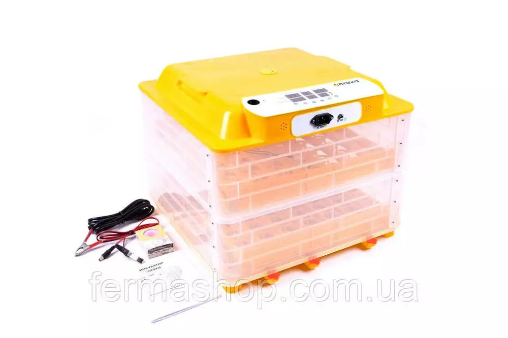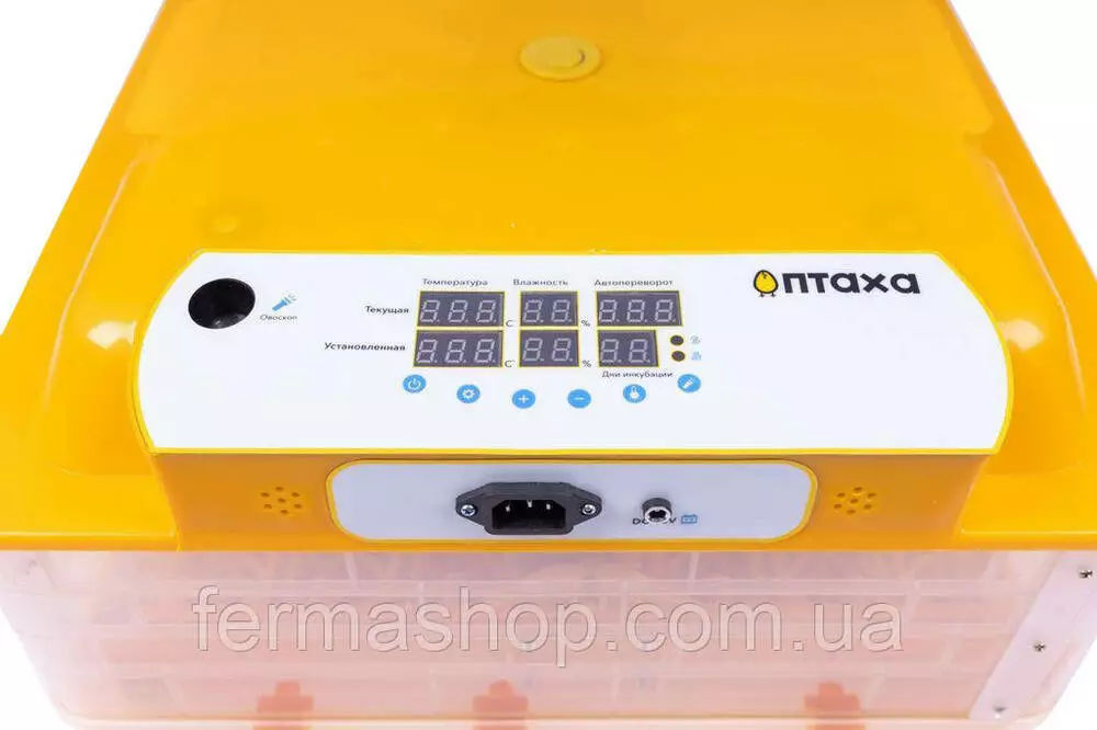 Средняя вместимость яиц: куриных - 120 шт., гусиных - 64 шт., утиных - 96 шт., перепелиных - 176 шт., индюшиных - 96 штЖК-экран для контроля температуры.