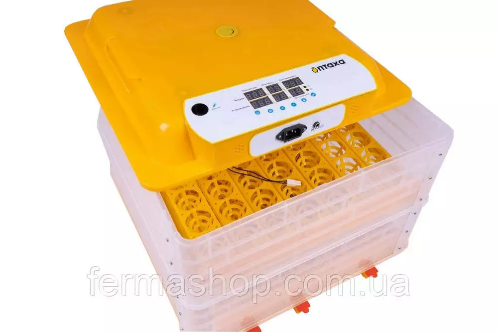 Средняя вместимость яиц: куриных - 120 шт., гусиных - 64 шт., утиных - 96 шт., перепелиных - 176 шт., индюшиных - 96 штЖК-экран для контроля температуры.