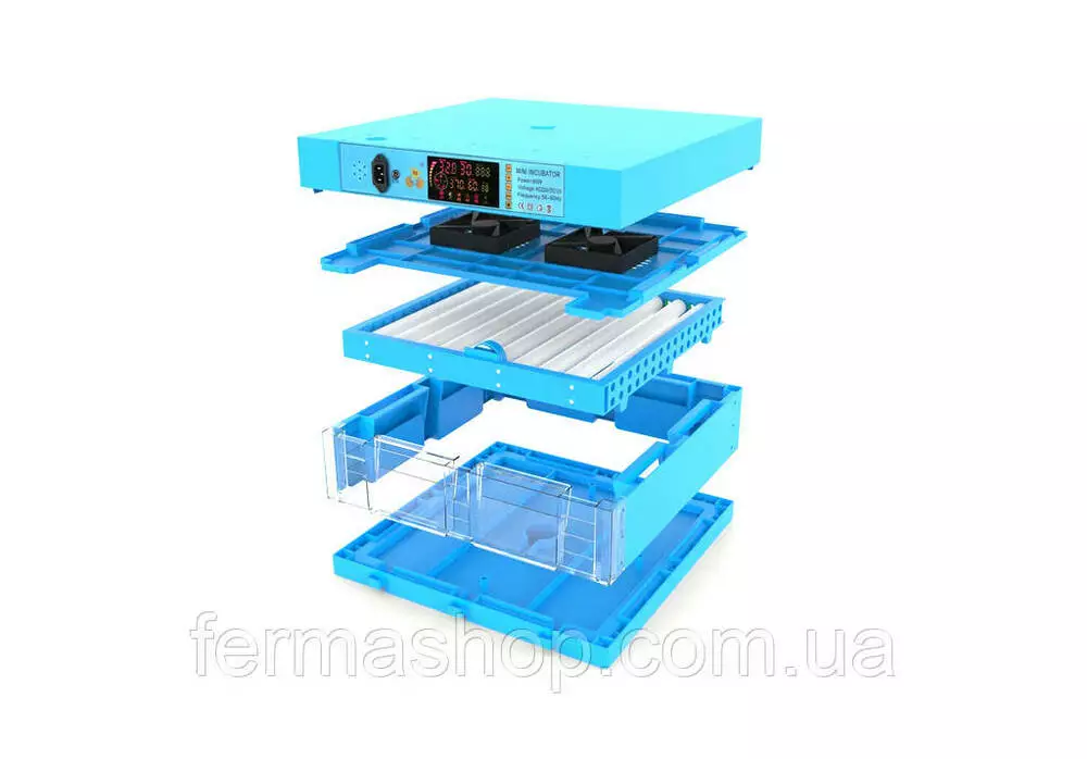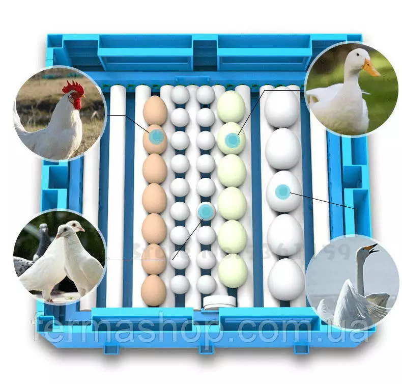 Средняя вместимость яиц: куриных - 60 шт., гусиных - 32 шт., утиных - 48 шт., перепелиных - 88 шт., индюшиных - 48 шт.;ЖК-экран для контроля температуры.