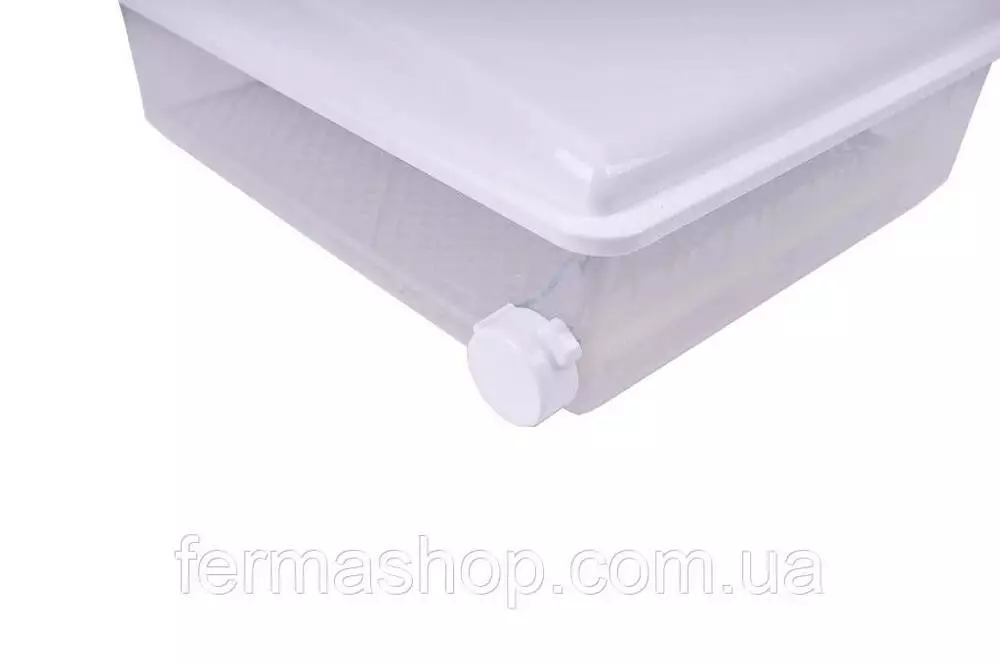 Инкубатор полностью сделан из высококачественного пластика. Все части собраны качественно, без щелей и зазоров. Вы можете быть уверены, что птенцы его не поклюют и Вам не понадобится новый инкубатор уже через несколько лет. Легко и быстро моется, грязь и неприятный запах не пропитывает корпус, как в пенопластовом аналоге.