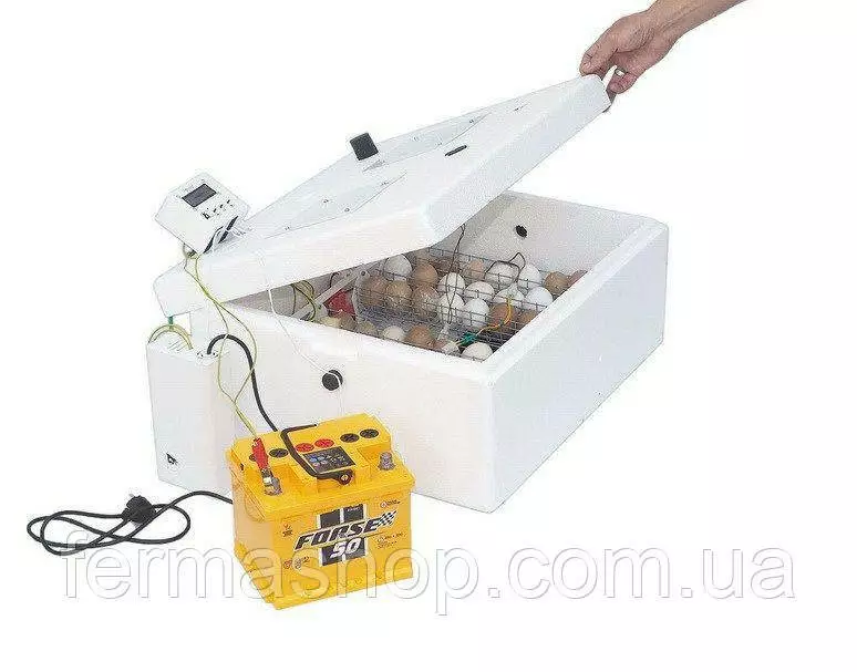 Инкубатор Br-Box 54 – представитель бюджетной серии инкубаторов с электронным управлением нагревом, влажностью, периодом и временем переворота яиц. Вместимость инкубатора : 54 куриных яйца (средним весом 50-55 гр), 48 яиц (ср. весом 65-75 гр). Лоток инкубатора, аналогичен лотку модели Micro Battery 50, оснащен двигателем с безопасным питанием 12в и шестью сетчатыми кассетами для яиц. При необходимости в кассеты лотка вставляется специальный сетчатый вкладыш Q28* для вывода перепелиных яиц. Емкость инкубатора с перепелиными вкладышами – 168 перепелиных яиц. Для вывода яиц со средним весом 80-150 гр , таких как гусь, используется универсальный лоток с увеличенными кассетами под гусиные яйца.Все энергопотребители инкубатора используют питание 12 вольт, которое обеспечивает выносной блок питания, идущий в комплекте поставки.