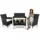 В комплект также входит журнальный столик из металла и закаленного стекла, обтянутый тканью ручной работы. Он идеально подойдет для кофе с друзьями или обеда с семьей на свежем воздухе.