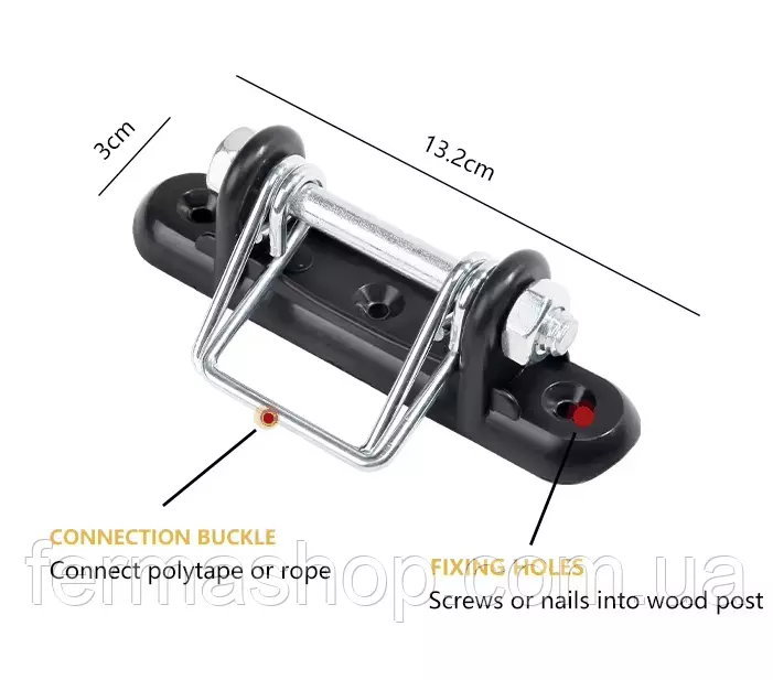 Кутовий натяжний ізолятор — це незамінний елемент для створення ефективної та довговічної електроогорожі. Спеціально розроблений для натяжки дротів, стрічок або шнурів у кутах огорожі, цей ізолятор забезпечує стабільність і запобігає втратам електричного струму. Ізолятор виготовлений із високоякісного пластику, стійкого до впливу ультрафіолету, вологи та перепадів температур. Завдяки своїй конструкції він забезпечує надійне кріплення і дозволяє рівномірно розподілити натяжку провідника. Опис: Для широких смуг 40 - 60 мм Швидка і безпечна установка Для загвинчування або цвяха Для смуг шириною 40 - 60 мм Для розгалуження в різних напрямках огорожі Стійкий пластик Кутовий ізолятор з болтами - для широких смуг до 60 мм Особливо міцний кутовий ізолятор для плавного відхилення матеріалу огородження в кутах для смуг від 40 до 60 мм. Дуже стабільний кутовий ізолятор з металевими болтами. З цим ізолятором для пасовищного загородження, плавне перенаправлення стрічки загородження для пасовищ по кутах не є проблемою. Він стійкий до ультрафіолетового випромінювання і підходить для високих сил розтягу. Установка швидка і безпечна. Просто прикрутіть кутовий ізолятор або прикріпіть його до стовпа огорожі. Для забезпечення правильної повторної електрифікації між проводами провідника кутовий ізолятор не підходить для стрічок з мідними проводами. Переваги кутового натяжного ізолятора: Універсальність: підходить для дротів, стрічок та шнурів різного діаметра. Міцність: виготовлений із зносостійких матеріалів, що забезпечують довговічність. Стійкість: стійкий до корозії та зовнішніх впливів. Легкість монтажу: легко встановлюється та фіксується. Застосування: Використовується для кріплення провідників у кутах або на кінцях огорожі. Підходить для різних типів електропастухів, як для сільськогосподарських тварин, так і для захисту території. Кутовий натяжний ізолятор забезпечує ефективність та безперебійність роботи вашої електричної огорожі, роблячи її надійною та безпечною.Оплата та доставка