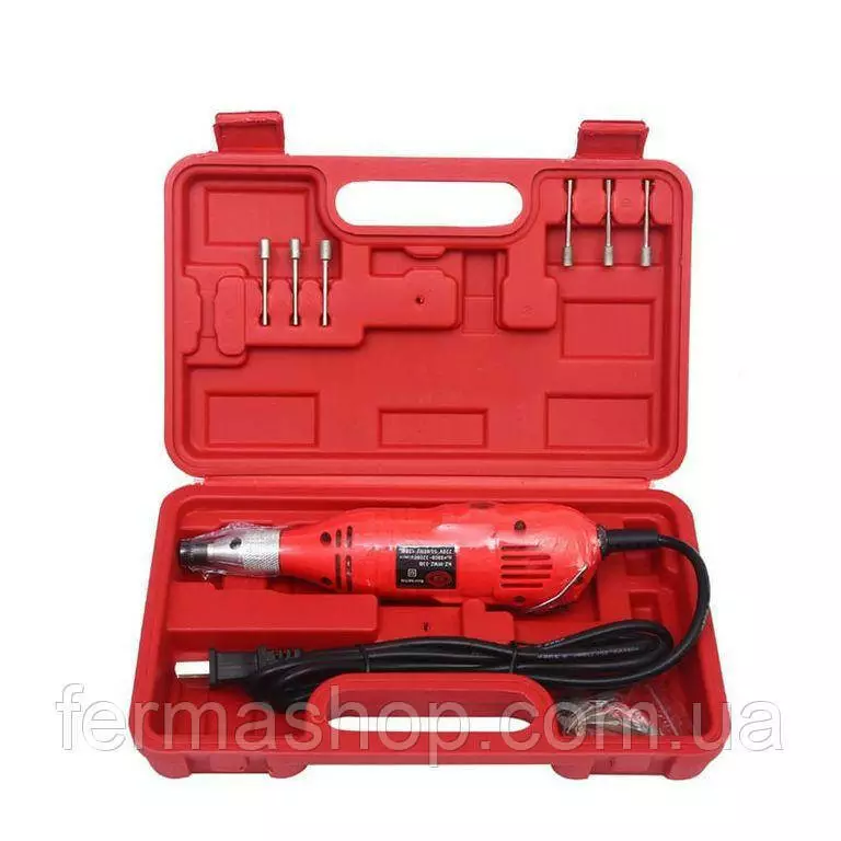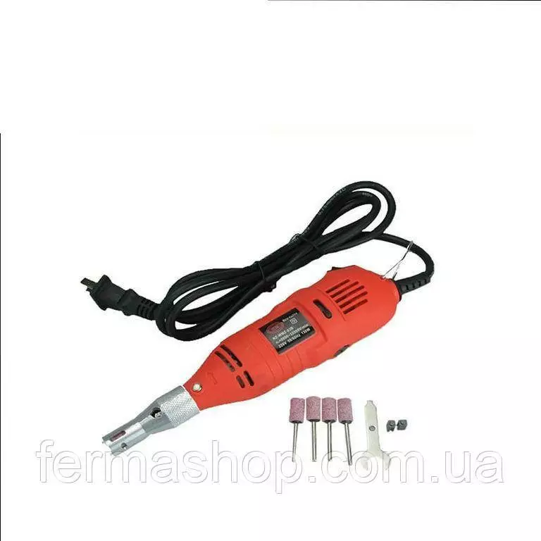Характеристики:Инструмент для шлифовки зубов у новорожденных поросят. Стачивание клыков происходит за счет вращения головки прибора с алмазным абразивным напылением.