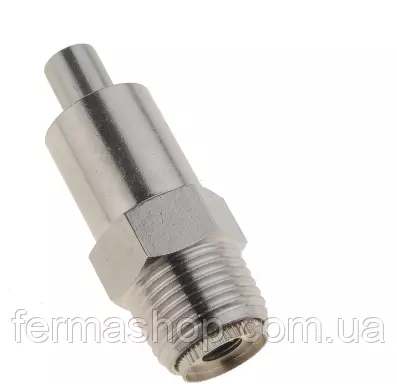 Устанавливается как поилка в трубку или крепление, либо в кормовые автоматы для свиней как ороситель для корма.