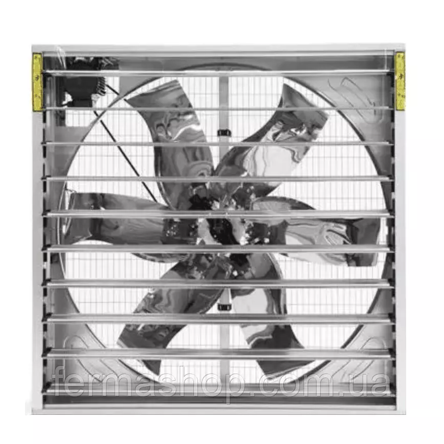Осьовий вентилятор 1380×1380×450 мм — це сучасний пристрій, створений для забезпечення потужної та стабільної вентиляції у великих приміщеннях. Його висока продуктивність і довговічність роблять його ідеальним для використання у фермерських господарствах, теплицях, складських і виробничих приміщеннях. Детальніше про товар: Тип Вентилятора: Промисловий витяжний вентилятор. Робоча температура: -25...40°C Мотор: 100% повний мідний провід. Матеріал: Каркас з оцинкованої сталі 180 г/м² товщиною 0,8 мм./Леза 1,2 мм. Робочий шум: < 65 дБ Тип приводу: ремінний Mitsuboshi (японський) Кількість оборотів: 440 об/хв. Продуктивність: 44500 м³/год. Напруга живлення: 380 В/50 Гц, 3 фази. Потужність: 1100 Вт Клас ізоляцій IP: 55 Ширина 1380 мм Довжина 450 мм Висота 1380 мм Гарантія: 1 рік Особливості вентилятора: Максимальна ефективність: потужний потік повітря забезпечує швидке оновлення повітря в приміщенні. Висока надійність: виготовлений із матеріалів, стійких до зношування та корозії. Енергоефективність: працює економно, не знижуючи продуктивності. Простота монтажу: легко встановлюється навіть у важкодоступних місцях. Широка сфера використання: підходить для приміщень із високими вимогами до вентиляції. Переваги: Забезпечує комфортний мікроклімат для тварин та людей. Видаляє зайву вологу, запахи та тепло. Знижує ризик утворення плісняви та грибків. Сприяє підтримці оптимальної температури. Сфери застосування: Ферми: ідеально підходить для тваринницьких господарств. Теплиці: підтримує потрібні умови для вирощування рослин. Склади: створює сприятливий клімат для збереження товарів. Виробничі приміщення: допомагає видалити тепло та пил, підвищуючи комфорт роботи.Оплата та доставка