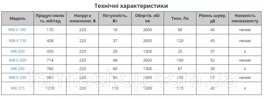 Турбовент WB 200, WB 250, WB 315 – для вентиляції приміщень побутового та промислового призначення (житлові, МАФ, кухні, комори та складські, майстерні, пташники, свинарники, корівники) з підвищеною вологістю та агресивним середовищем, супер тихий.