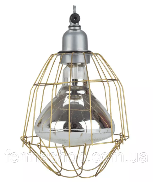 Принцип работы: Закручиваем инфракрасную лампу в защитный плафон, подвешиваем плафон в нужном месте и по мере роста птицы или животных регулируем по высоте.