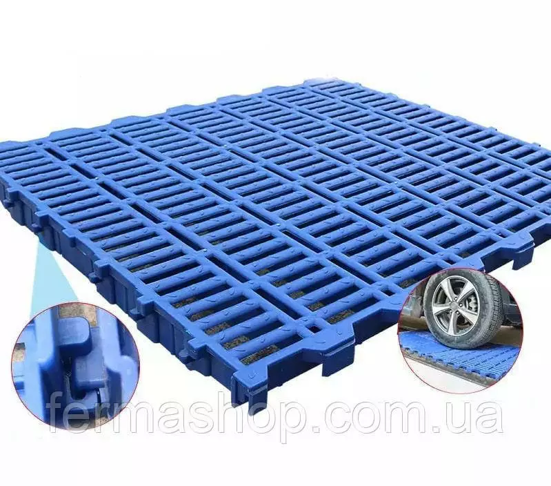 Характеристики: Пластиковые решетки используются, в основном, для подсосных поросят и поросят на доращивании. Они изготовлены из блок-сополимер-пропилена импортного производства, изготовлена из первичного пластика. Стандартный размер решетки - 600х400х50 мм. Нагрузка на одну решетку: Максимальная - 350 кг., Рабочая до 150 кг Преимущества: Полы не отбирают тепло у животных, снижают дополнительные затраты на отопление. Улучшают санитарно-гигиенические условие для содержания животных Устойчивые к агрессивной среде и низкой температуре, аммиаку. Легко подвергаются чистке и мойке. Надежность в эксплуатации. Снижение заболеваемости, чистый пол, чистые сухие поросята, отсутствие трудозатрат.Оплата та доставка