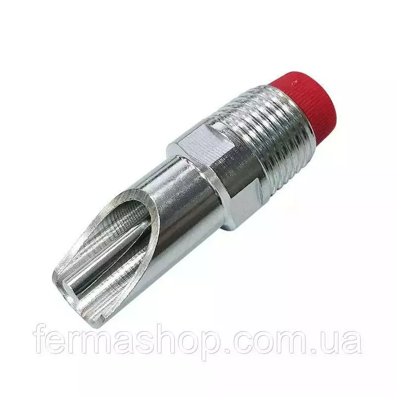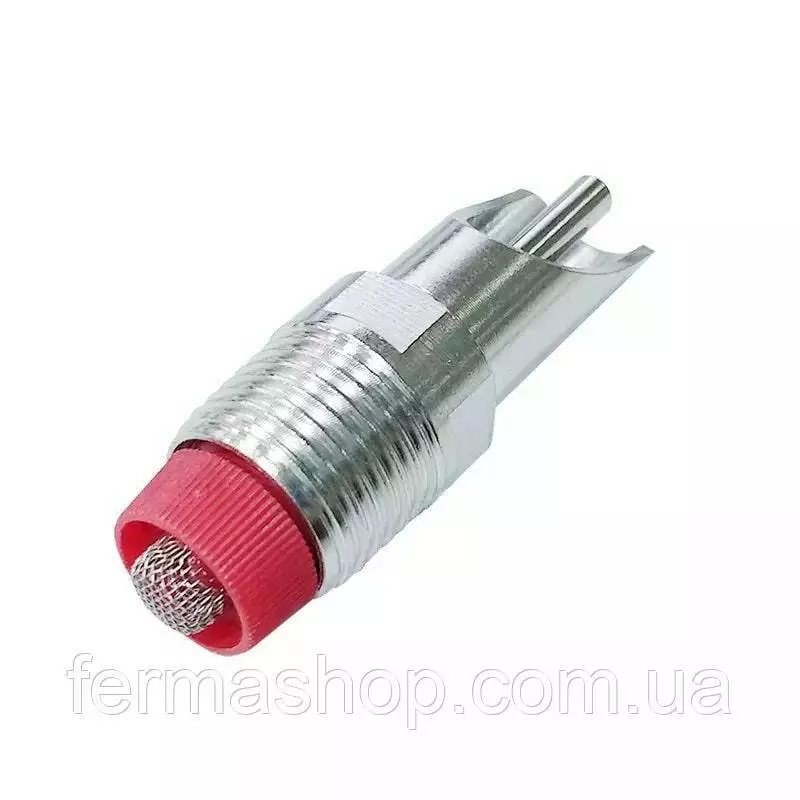 Рекомендуется эта поилка для подсосных поросят и поросят до 3 месяцев и весом до 30 кг. Характеристики: Поилка рассчитанная до 10 голов Корпус и рабочая часть - нержавейка Пластиковый колпачок с металлической сеточкой для защиты от попадания мелких частиц и регулировкой воды на три отверстия Соединение с трубой - резьба на 1/2" Длина 55 мм Надежная, долговечная Вес 0,054кг(объемный вес 0,003кг). Поилка состоит из: Корпус – нержавейка рабочая часть(шток) - нержавейка колпачок - пластиковый из металлической сеточкой, либо полностью нержавеющий пружинка резинка Преимущества ниппельных поилок для свиней: постоянное наличие воды вода всегда чистая, без примесей есть возможность дозировано вводить лекарства и витамины поилку достаточно легко прикрепить и эксплуатировать Требования к размещению: Сосковая поилка для поросят устанавливается в регулирующие опоры на 1 или 2 поилке, или под крепление для поилок 1/2 с переходом на опуск. Установку поилки делают там где свиньи опорожняются либо у корыта. Закреплять сосковую поилку необходимо под углом 15°-45° – так как поросятам будет удобнее пользоваться, а также уменьшится разбрызгивание воды животными. В зависимости от возраста свиней и вида поилок, их устанавливают на нужной высоте для удобства пользования:Оплата та доставка