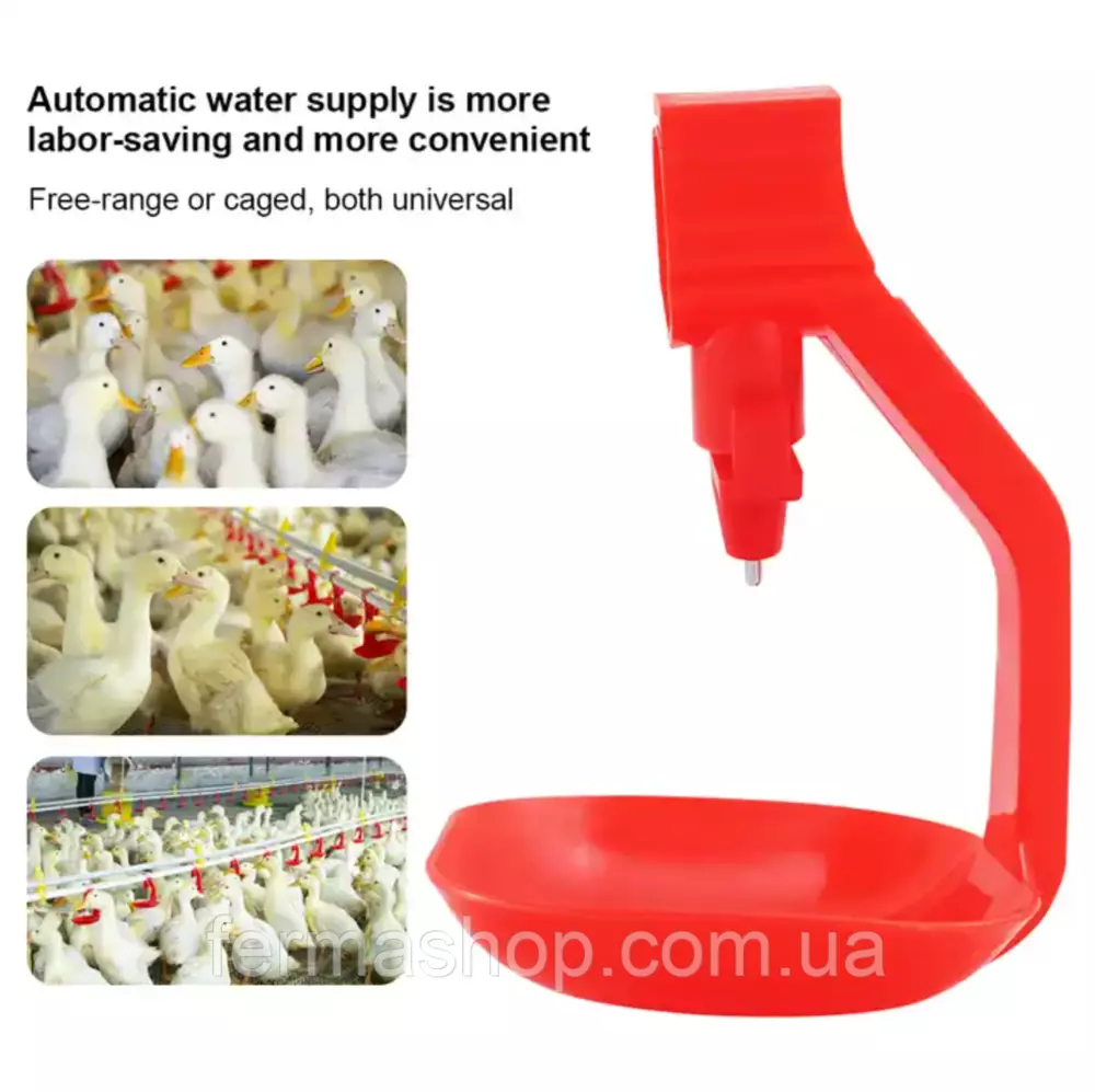 Немного о поилке:Используется в системах для поения птиц: кур, цыплят, перепелов, индюков, бройлеров, уток, гусей.