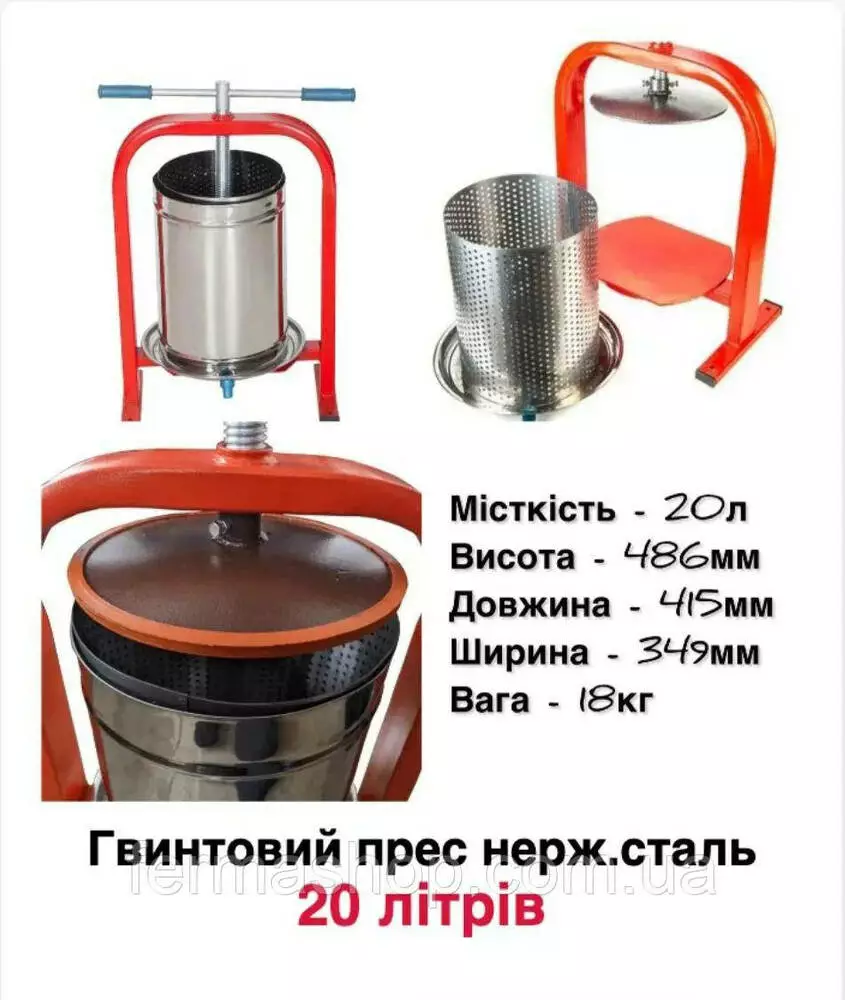 Пресс винтовой (Дионис) 20 л з выдвижным бункером для загрузки сырья