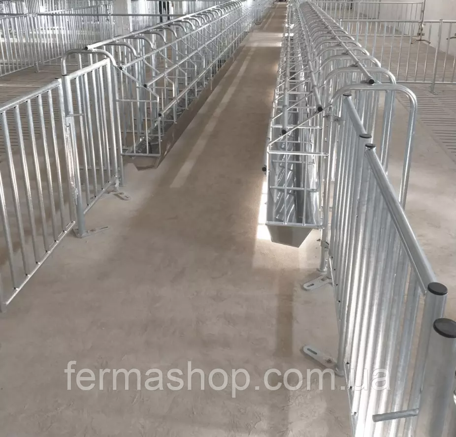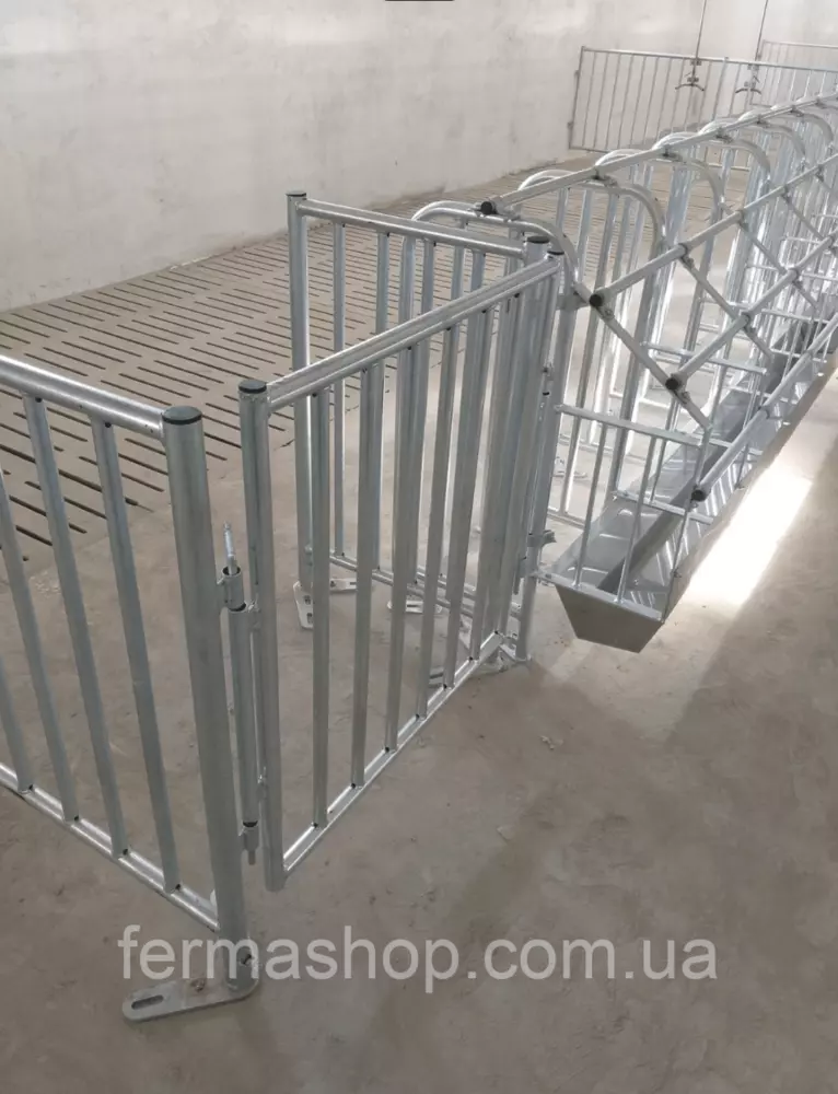 Плечевой разделитель для свиноматок Назначение: Плечевой разделитель используется в свиноводстве для группового содержания свиноматок, чтобы предотвратить травмы, конфликты между животными и обеспечить комфортные условия для кормления. Достоинства: Предотвращение травм : Разделители препятствуют травмам, которые могут возникнуть из-за несчастных случаев, когда свиноматки пытаются пройти через корыто или влияют друг на друга. Это особенно важно в условиях группового содержания. Уменьшение агрессии : Плечевой разделитель уменьшает конкуренцию между свиноматками за еду. Это помогает избежать агрессивных столкновений, которые могут привести к стрессу и травмам. Комфортное кормление Разделитель обеспечивает свиноматкам доступ к корму без помех. Это позволяет каждой свиноматке спокойно есть, не ощущая давления со стороны других. Улучшение условий содержания : Благодаря разделению пространства свиноматки могут чувствовать себя менее стрессово, что положительно влияет на их общее здоровье и продуктивность. Легкость в управлении : Плечевые разделители облегчают уход за свиноматками, предоставляя возможность легкого обзора и кормления. Функции: 1100x700 Вес 13,9 кг Толщина трубы 2,5мм. Материал: Оцинкованная стальОплата та доставка