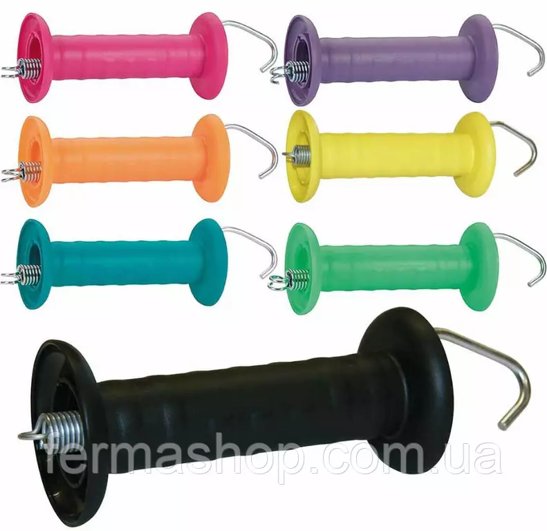 Практичная ручка с крючком с небольшой пружиной для ворот, - подходит для пастбищных загонов, оснащённых електроограждением.