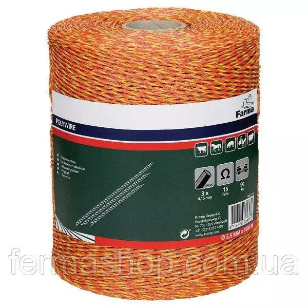 Шнур для электропастуха 1000 м, 3x0,16, Farma, Польша