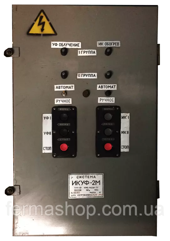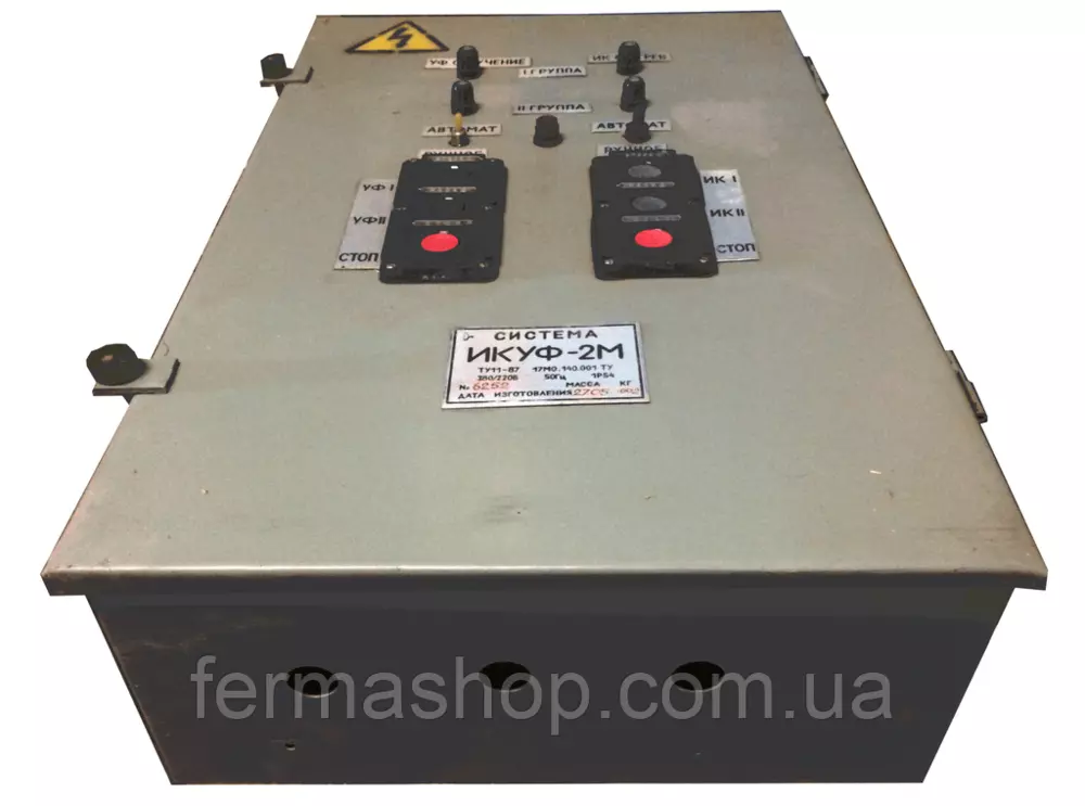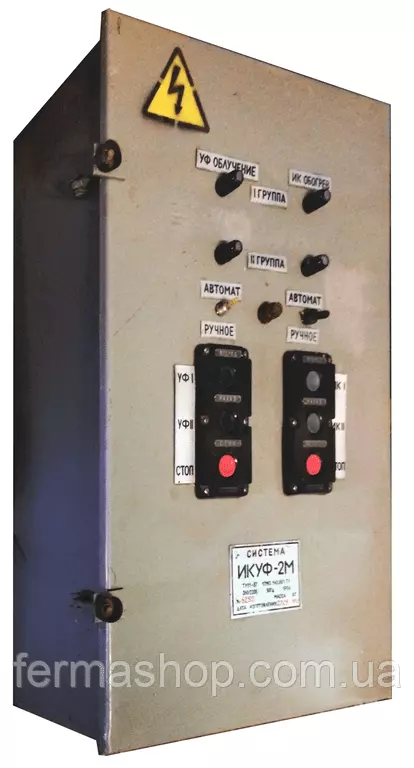 Силовой щит ИКУФ-2М, 380V приминяется для создания необходимого микроклимата в животноводческом помещении с целью сохранения поголовья и увеличения привеса молодняка сельскохозяйственных животных рекомендуется обогревать и облучать его источником инфракрасного и ультрафиолетового излучений. ИК-обогрев молодняка улучшает кровообращение, способствует повышению биологических -функций и сопротивляемости организма простудным заболеваниям. УФ-облучение способствует интенсификации биохимических и обменных процессов, улучшению клинического состояния животных и устойчивости их к заболеваниям.Характеристики: