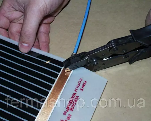 Передбачає собою обжимну контактну кліпсу зі спеціальними зубцями, які, розриваючи зовнішнє поліетиленове підстава нагрівача, забезпечують надійний і повноцінний контакт токопроводящей медної смуги нагрівальної плівки.