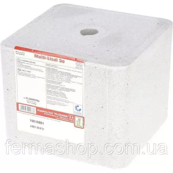 Описание продукта: Солонцы изготавливаются из молотой каменной соли методом прессования. Минеральная смесь, содержащая микроэлементы – магний, марганец, цинк, кобальт, йод. Не содержит аллергенов и ГМО / генетически модифицированных продуктов. Характеристика продукта: используются в качестве минеральной смеси, предназначенной для крупного рогатого скота, лошадей, коз, овец и оленей. Брикеты имеют форму коричневых призм.Вес единицы 10 кг ± 0,5.