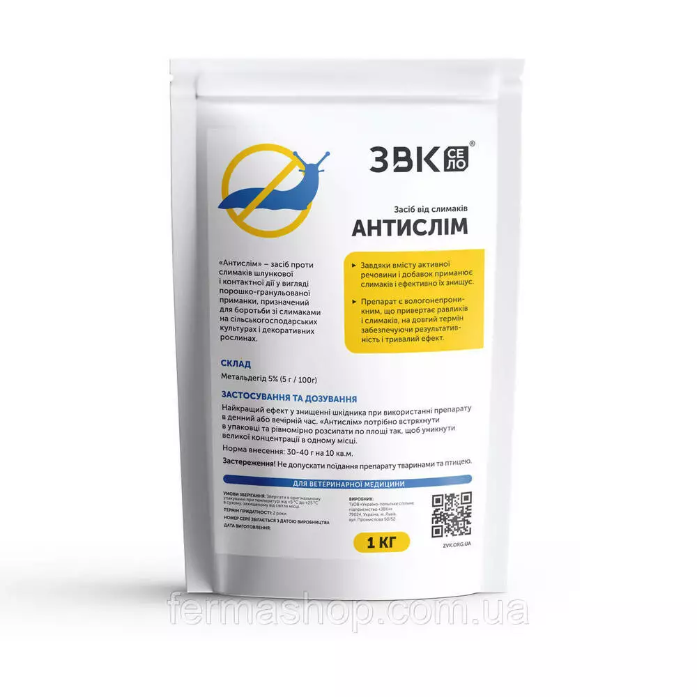 «Антислим» – средство против улиток желудочного и контактного действия в виде порошко-гранулированной приманки, предназначенное для борьбы со слизнями на сельскохозяйственных культурах и декоративных растениях.Состав:
