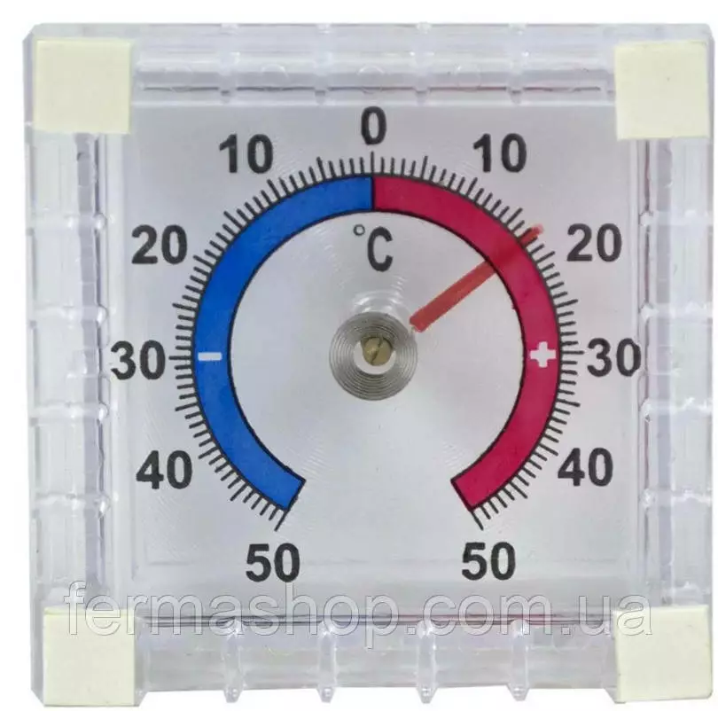 Термометр крепится с помощью липкой ленты на предварительно очищенное стекло с наружной стороны окна. Липкая лента позволяет приклеивать изделие на любые поверхности: дерево, металл, стекло, пластик. Липучка предназначена для одноразового использования и, соответственно, переклеить термометр второй раз не получится. Температура липучки при установке должна быть не ниже +10°С. Диапазон измерен от -50 до +50 градусов.Оплата та доставка