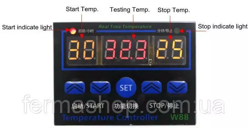 W88 цифровой термостат 12 Контроль температуры; Контроль температуры switch-19 ~ 99C • Название продукта: W88 цифровой регулятор температуры • Температура Диапазон измерения: -50 ~ + 110 °C • Контроль температуры диапазон: -19-99 °C • Температура Точность измерения: ±3 °C • Разрешение: 1 °C • Точность: 1 °C • Температура измерительного зонда: NTC10K/B3435 • Мощность Напряжение питания: 12 В Цветовой дисплей: цвет красный, • Тип вывода: реле 10AОплата та доставка