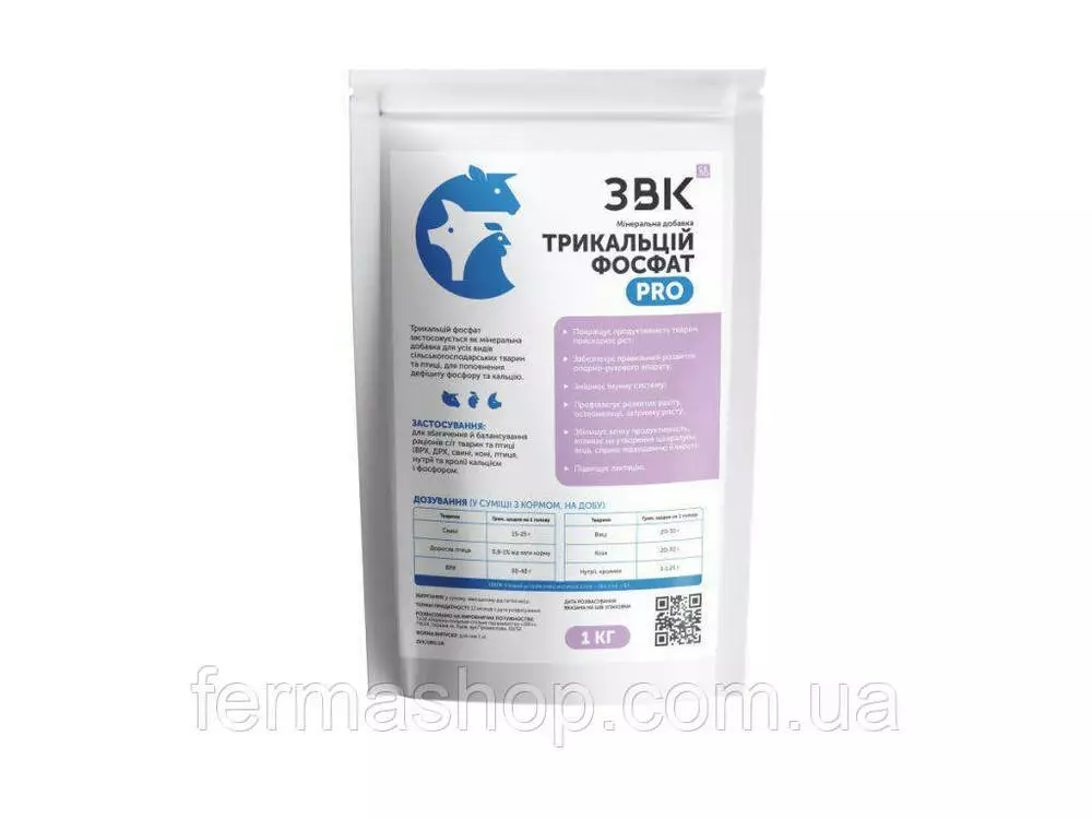 Трикальций фосфат применяется в качестве минеральной добавки для всех видов сельскохозяйственных животных и птицы, для восполнения дефицита фосфора и кальция.Характеристика