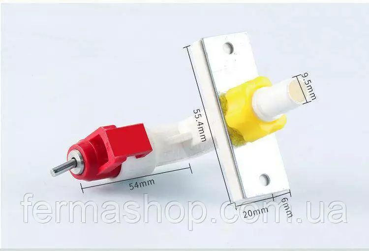 Уголок с ниппельной поилкой устанавливаться в клетку под шланг 9мм.Характеристики :