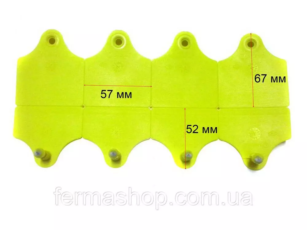 Бирка ушная состоит из двух частей: входящей и полой части, которые соединяются с помощью аппликатора непосредственно на ухе животного.Цветовая гамма бирок: уточняйте.