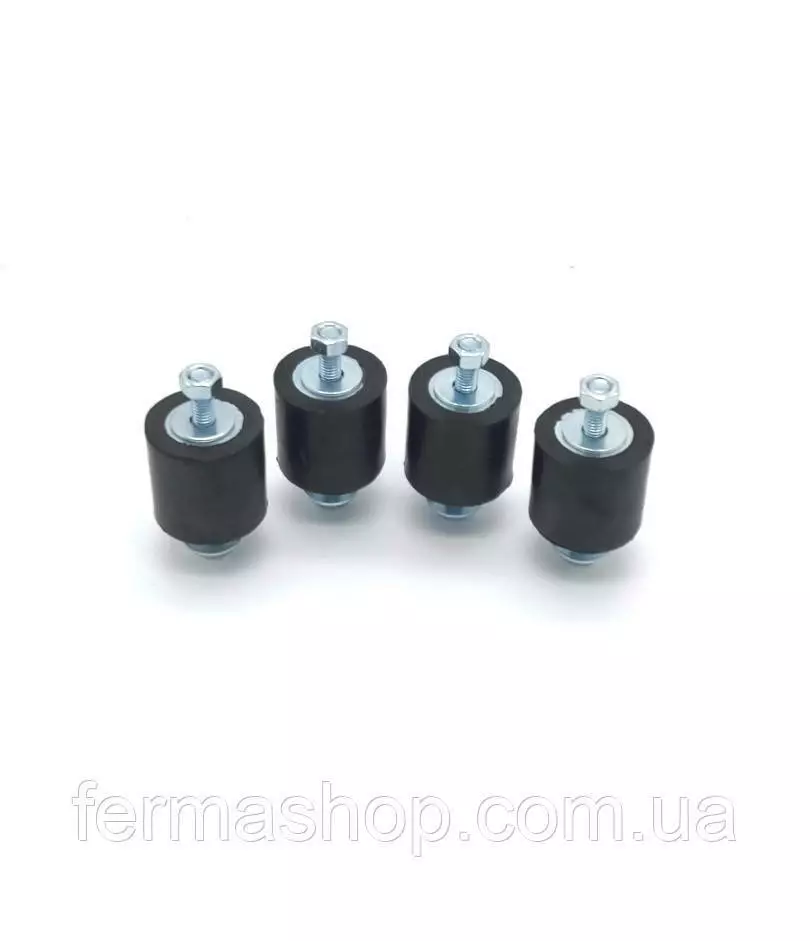 В комплект входят 4 виброопоры, 8 гаек М8 и 8 шайб М8, что обеспечивает полный набор для монтажа.