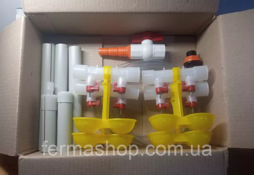 Также Вы можете приобрести поилки двойные на круглую трубу 25 мм, а также готовые наборы-конструкторы, которые включают в себя всё, что необходимо, чтобы собрать систему поения!