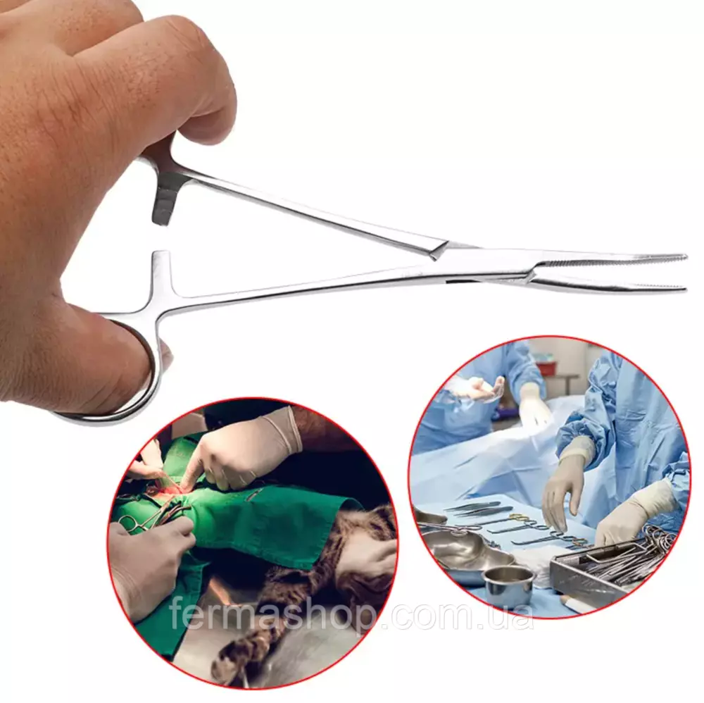 Ветеринарные Хирургические Зажимы с Прямой Головкой Эти хирургические зажимы изготовлены из высококачественной медицинской нержавеющей стали, являются незаменимым инструментом для профессиональной ветеринарной практики. Они предназначены для надежной остановки кровотечения во время операций, обеспечивая контроль и точность в наиболее ответственных моментах хирургического вмешательства. Прямая зажимная головка обеспечивает высокую точность при работе с сосудами и другими тканями, а специальное зубчатое удерживание гарантирует надежное фиксирование. Эргономичная конструкция ручек с кольцами для пальцев обеспечивает комфорт и уменьшает усталость во время длительных операций. Полированная поверхность не только придает инструменту профессиональный вид, но и облегчает его чистку и стерилизацию, отвечая всем стандартам ветеринарной медицины. Выбирайте наши ветеринарные хирургические зажимы для обеспечения качества и надежности, требуемых вашей практикой. Характеристики: Материал: нержавеющая сталь Размеры: 160мм Цена за 1 шт. Тип: Прямая головка зажимовОплата та доставка