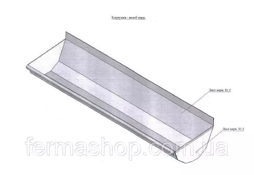 В комплектацию станка входит: Жолоб Изготовлена из нержавеющей стали Цена указана за метр погонный Желоб можно сделать протяженностью до 6 метров, так как больше возникают проблемы с доставкой в связи с габаритами конструкции. Длина желоба подбирают в зависимости от ширины станка места. Для примера у вас ряд из 7 станков для опороса, шириной 650 мм – тогда вам нужно желоб 7*650=4550мм, и также на каждый такой желоб покупаются две боковины которые будут сразу сварены под ваш заказ.Оплата та доставка