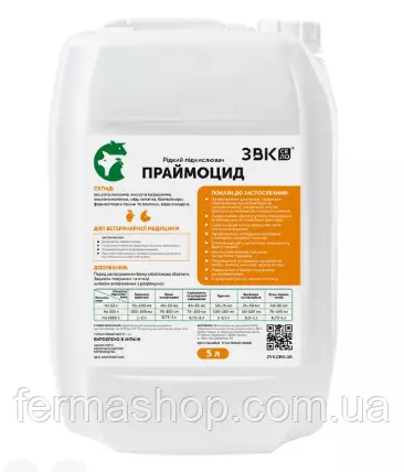 Жидкий подкислитель “Праймоцид” – продукт совершенного сочетания органических кислот и хелатного соединения меди для эффективного действия в каждом отделе желудочно-кишечного тракта животных и птицы.